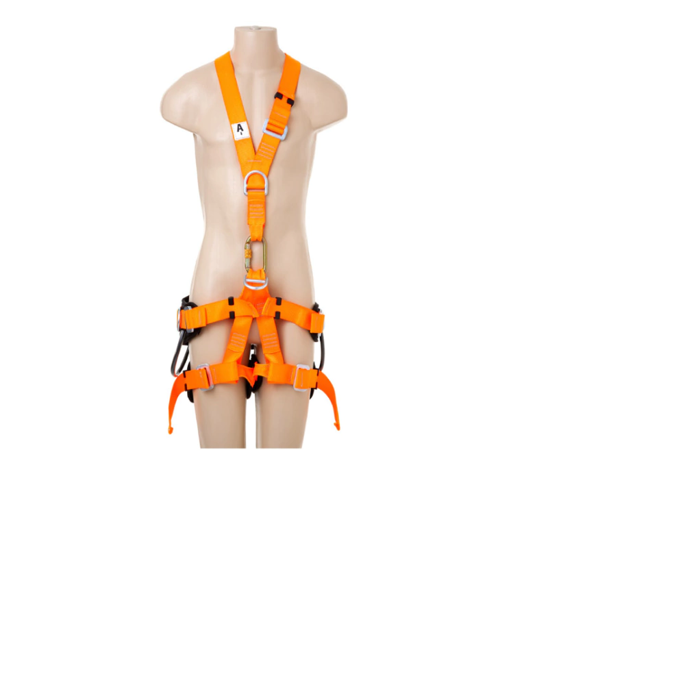 Cinturão de segurança tipo paraquedista/abdominal, confeccionado em fita de poliéster. Possui duas argolas tipo “ D” para conexões contra quedas sendo uma dorsal e uma peitoral, duas argolas em “D“ na região da cintura para descanso do talabarte e posicionamento e uma argola em “D“ umbilical para trabalho de suspensão – resgate.